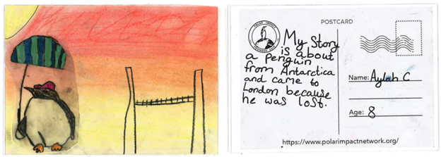 Alongside Royal Museums Greenwich, we organised an artist-led workshop with local schoolchildren in South London. These workshops encouraged young talents to envision and create their own postcards depicting the future of polar exploration.